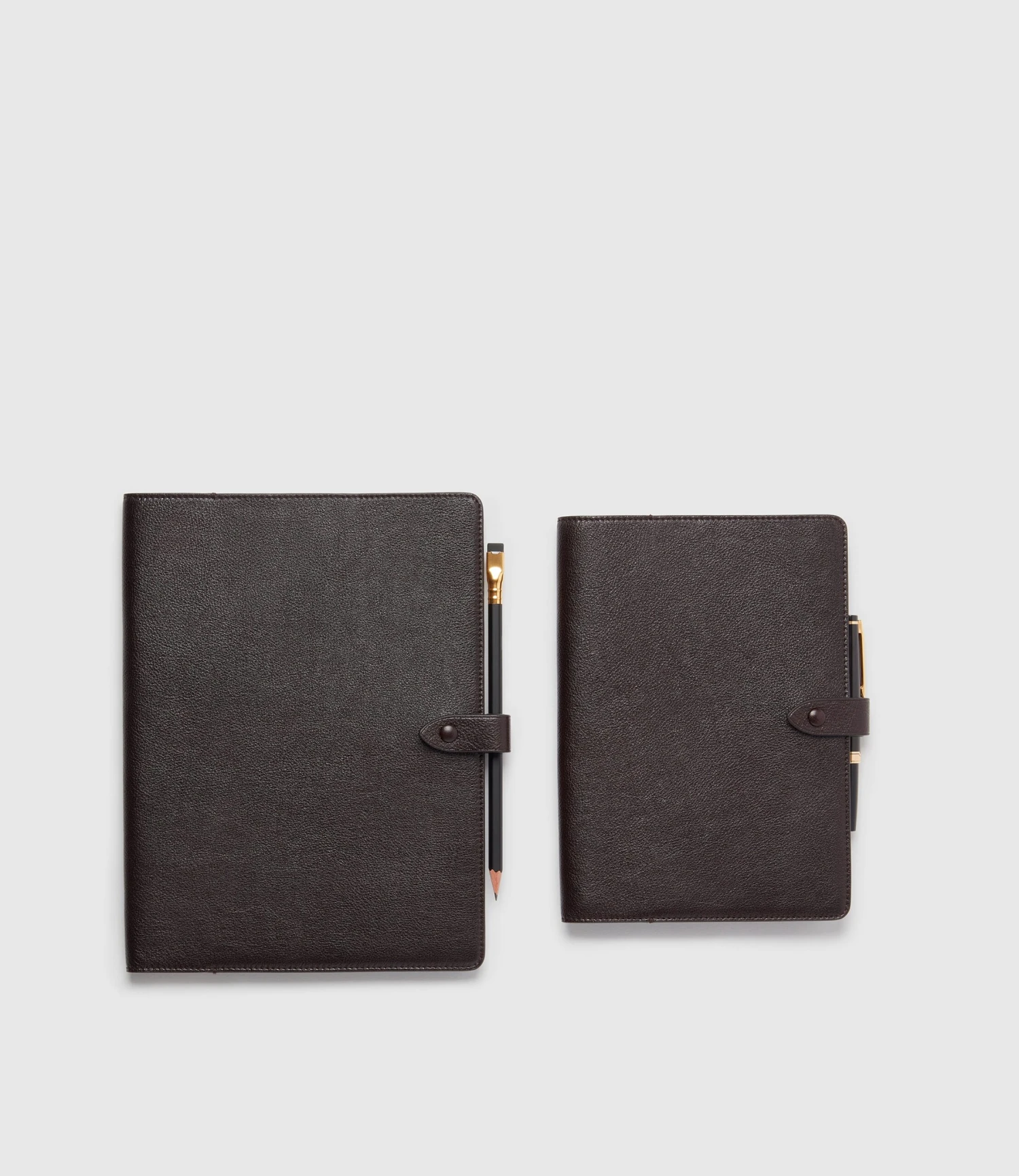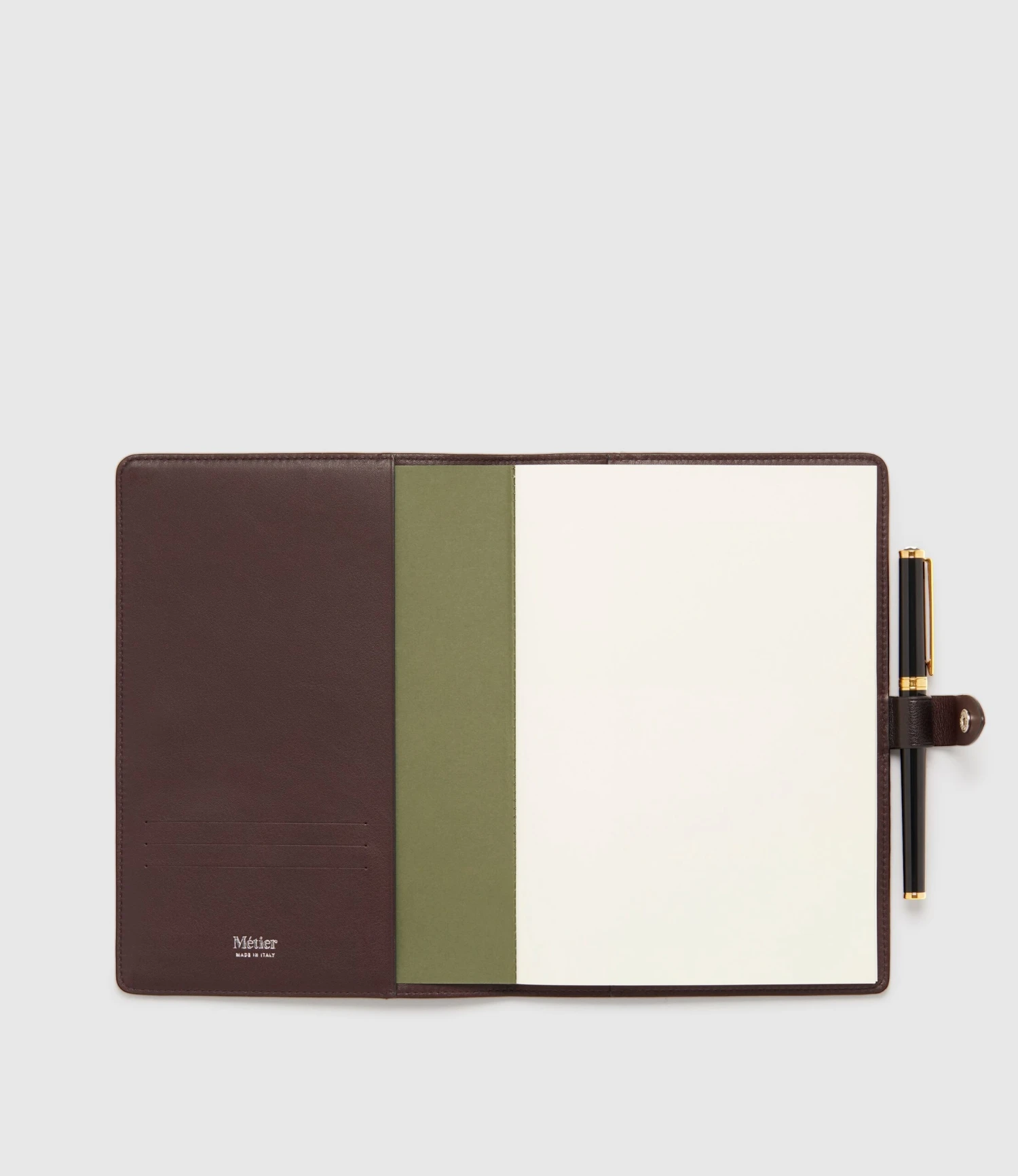 An elegant companion for your daily notes, our ultra-thin A5 notebook cover has been crafted by hand. Designed to effortlessly follow you from your desk at your home office to anywhere the road takes you, this leather notebook features business card slots and a slimline pen loop discreetly placed under the strap. Pair it with our A5 Agenda or a notebook created in collaboration with G.F Smith, the makers of world’s finest and most distinctive paper. Please note paper agenda and notebook are purchased separately.