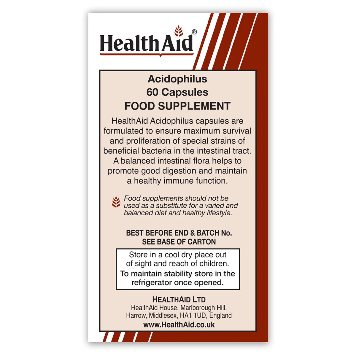 HealthAid Acidophilus® + FOS™ helps to supplement your diet by replenishing the ‘friendly’ bacteria, support the immune system and assist in the absorption of nutrients within the gut by providing 100 million special strains of Lactobacillus and Bifidobacterium (live microorganisms). Fructo-Oligosaccharides (FOS) a prebiotic, has been added to help support the growth of ‘friendly’ bacteria in the intestinal tract.