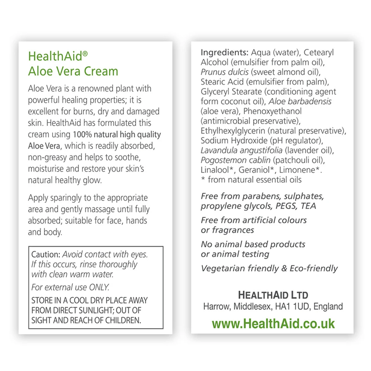 Aloe Vera High Potency Cream contains Aloe Vera is a renowned plant with powerful healing properties; it is excellent for burns, dry and damaged skin. HealthAid® has formulated this cream using 100% natural high quality Aloe Vera, which is readily absorbed, non-greasy and helps to soothe, moisturise and restore your skin’s natural healthy glow. It is vegetarian friendly & eco-friendly