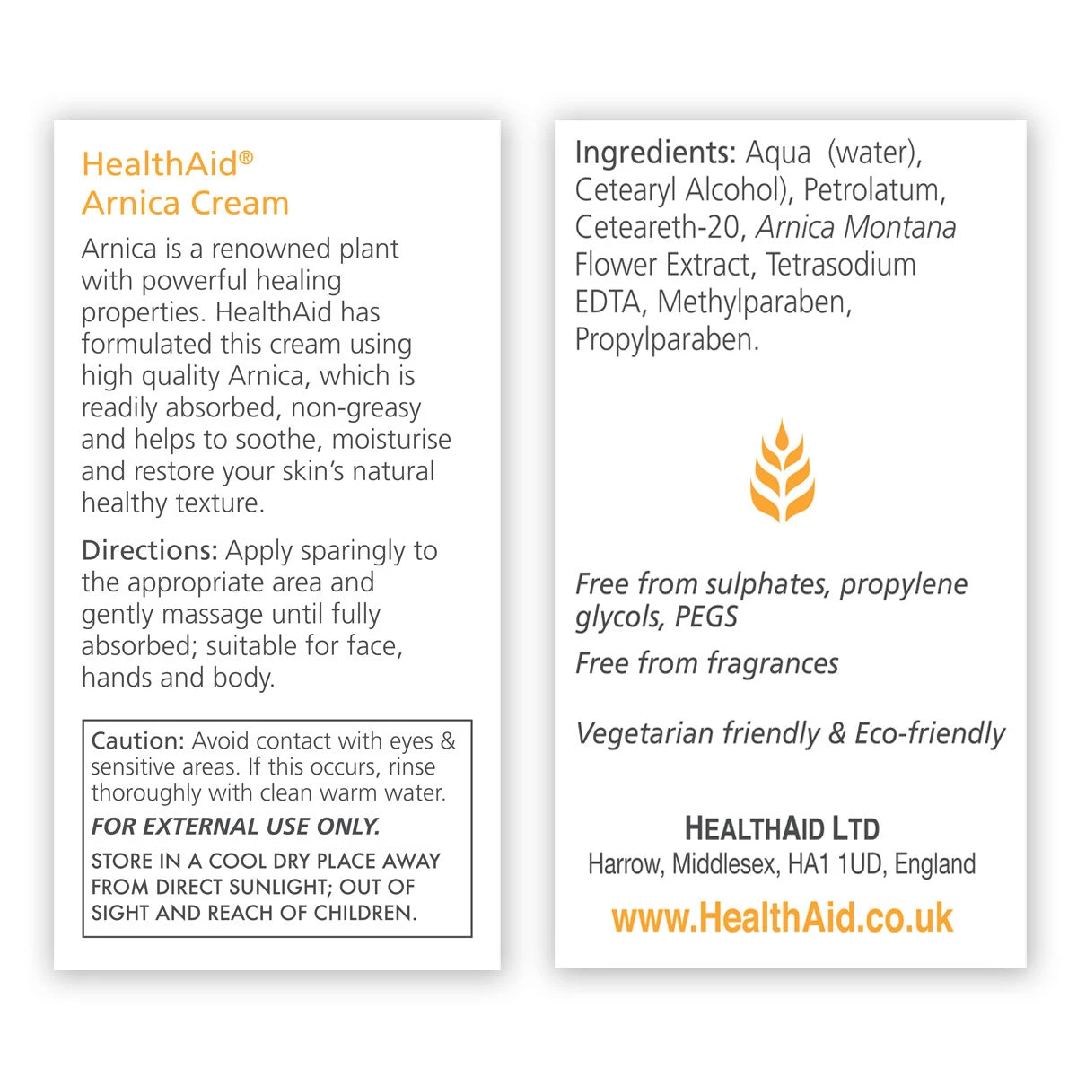 Arnica Cream 75ml contains Arnica, which is a renowned plant with powerful health benefits. HealthAid® has formulated this cream using high quality Arnica, which is readily absorbed, non-greasy and helps to soothe, moisturise and restore your skin’s natural healthy texture.
