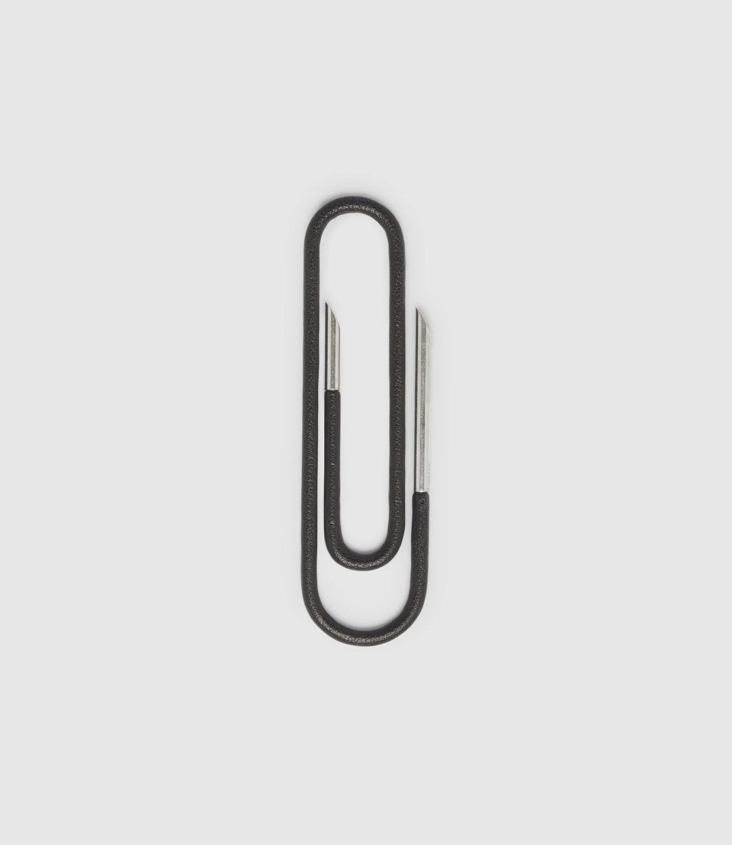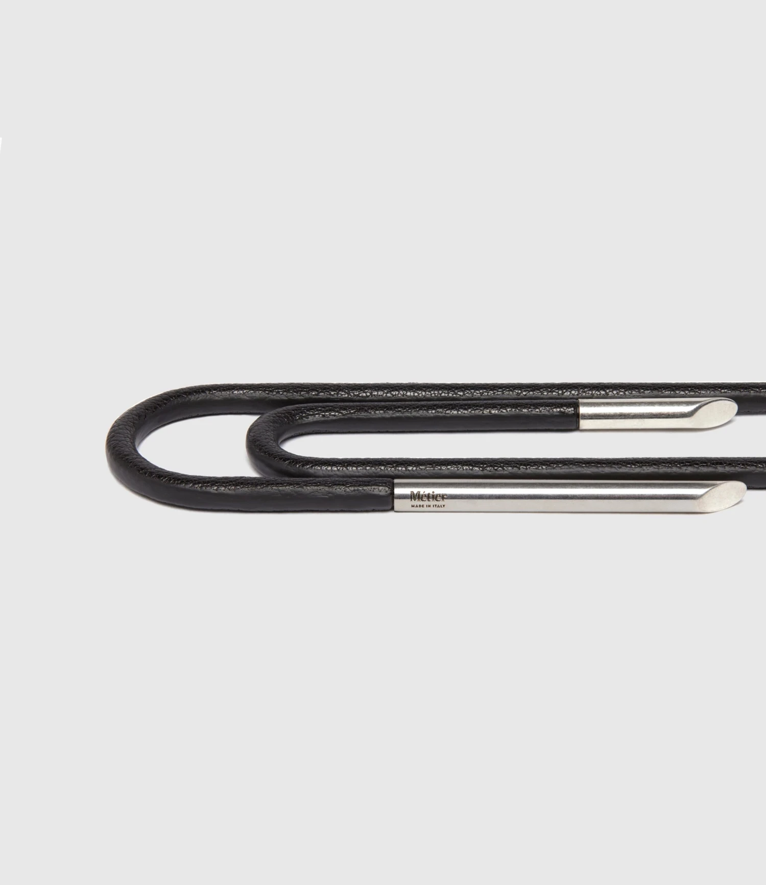 A leather bookmark crafted from solid brass and covered by hand in the finest Italian leather. Like all of our hardware—the piece is crafted entirely by hand and out of solid brass. The body is covered in leather and a brass puntale (tip) with our signature Silverstone finish is then inserted onto both ends.