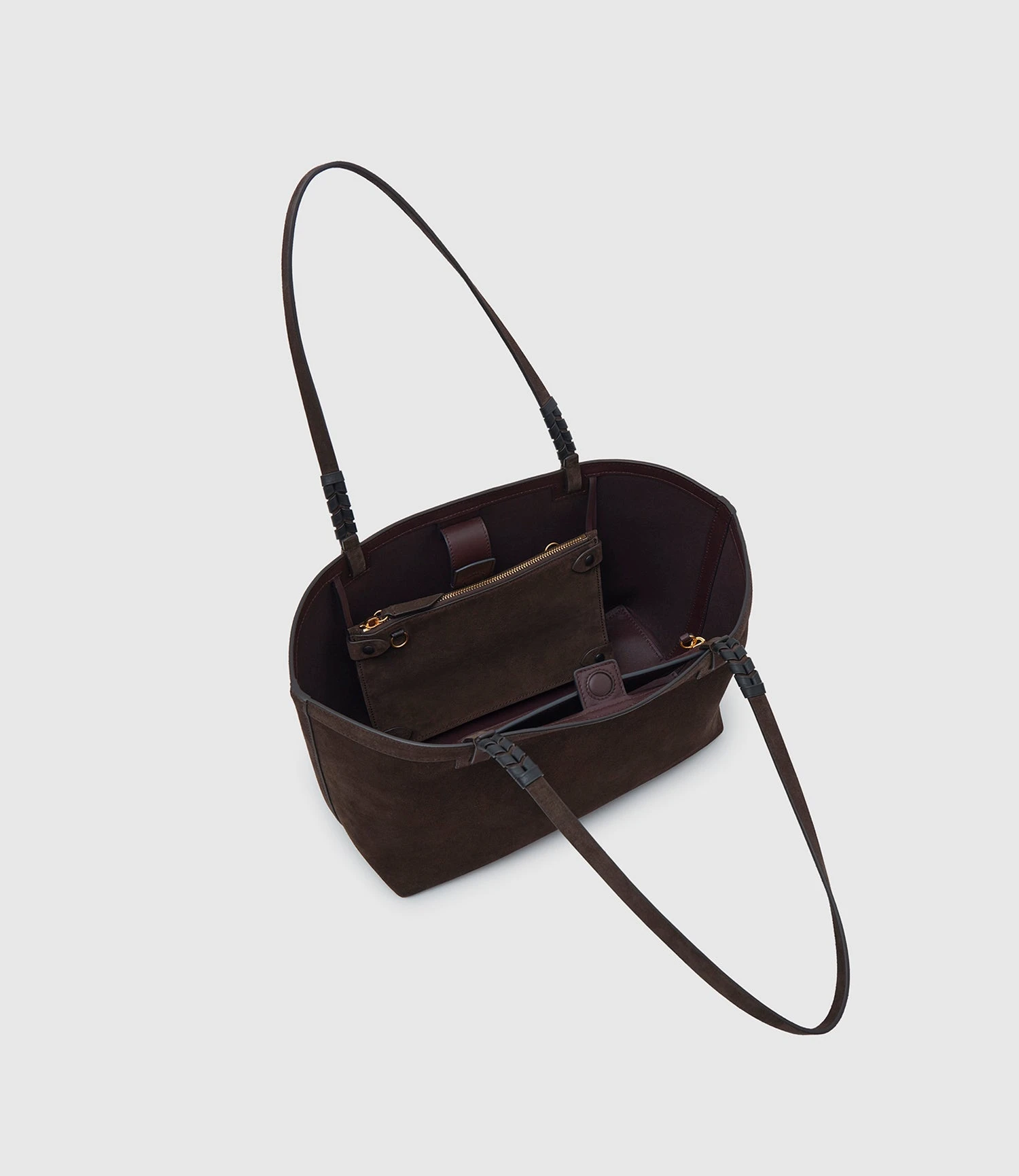 Here, the middle-sized offering in the Cala line, the 32, perfectly suited to take you through a full day, and day trip, with room for essentials but also incidentals. An interior pocket, a detachable pouch that can transform into a cross body bag, and space for the Stowaway aid in organising while the hand-stitching anchoring the handle, and a discreet magnetic top closure provide a delicate finish.