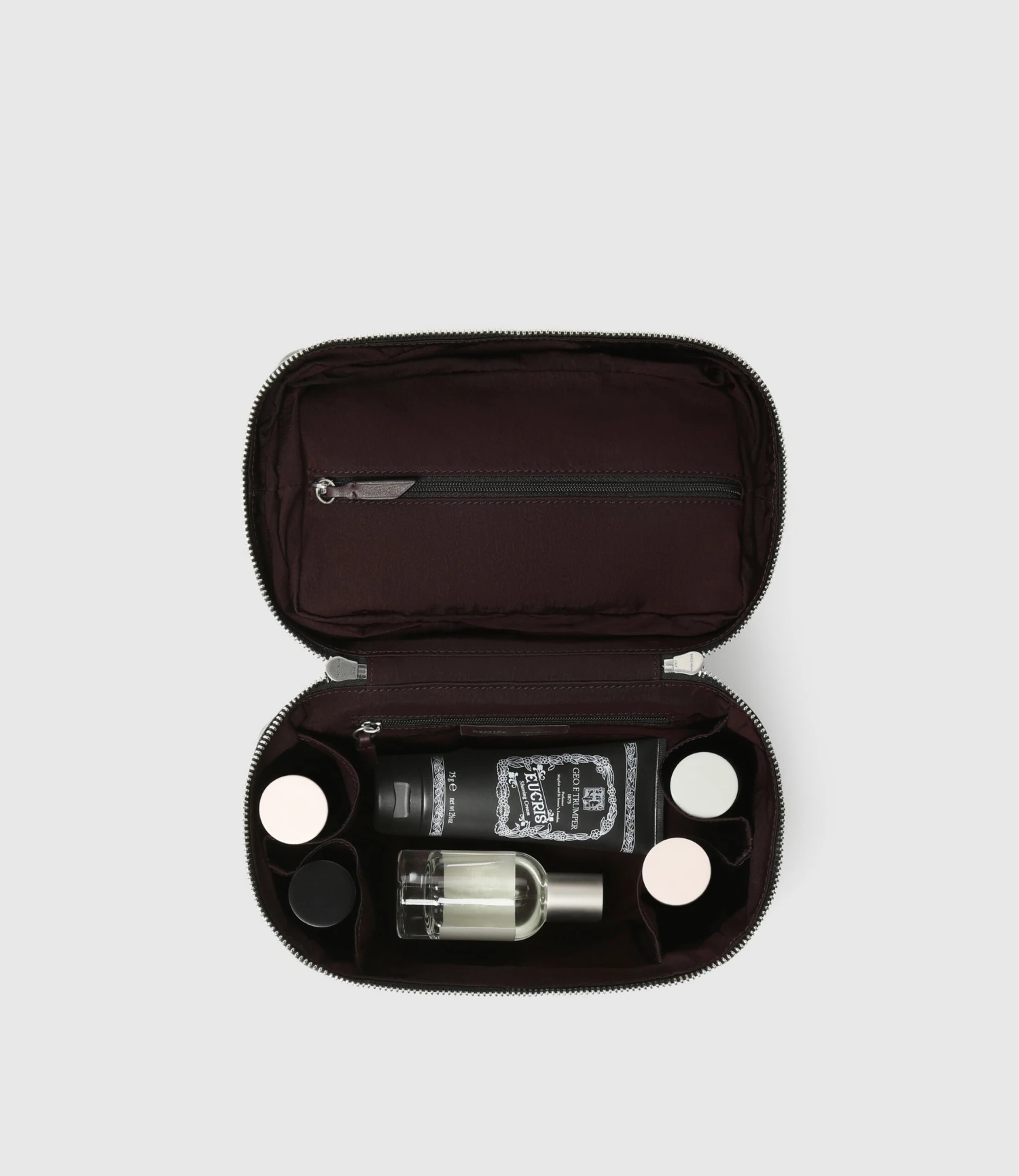 Our Long Haul Toiletry Bag has been designed with a frequent traveller in mind. Featuring a waterproof interior in our signature Amarone colour, pockets for bottles and a two zippered compartment to keep your smaller items perfectly organised.