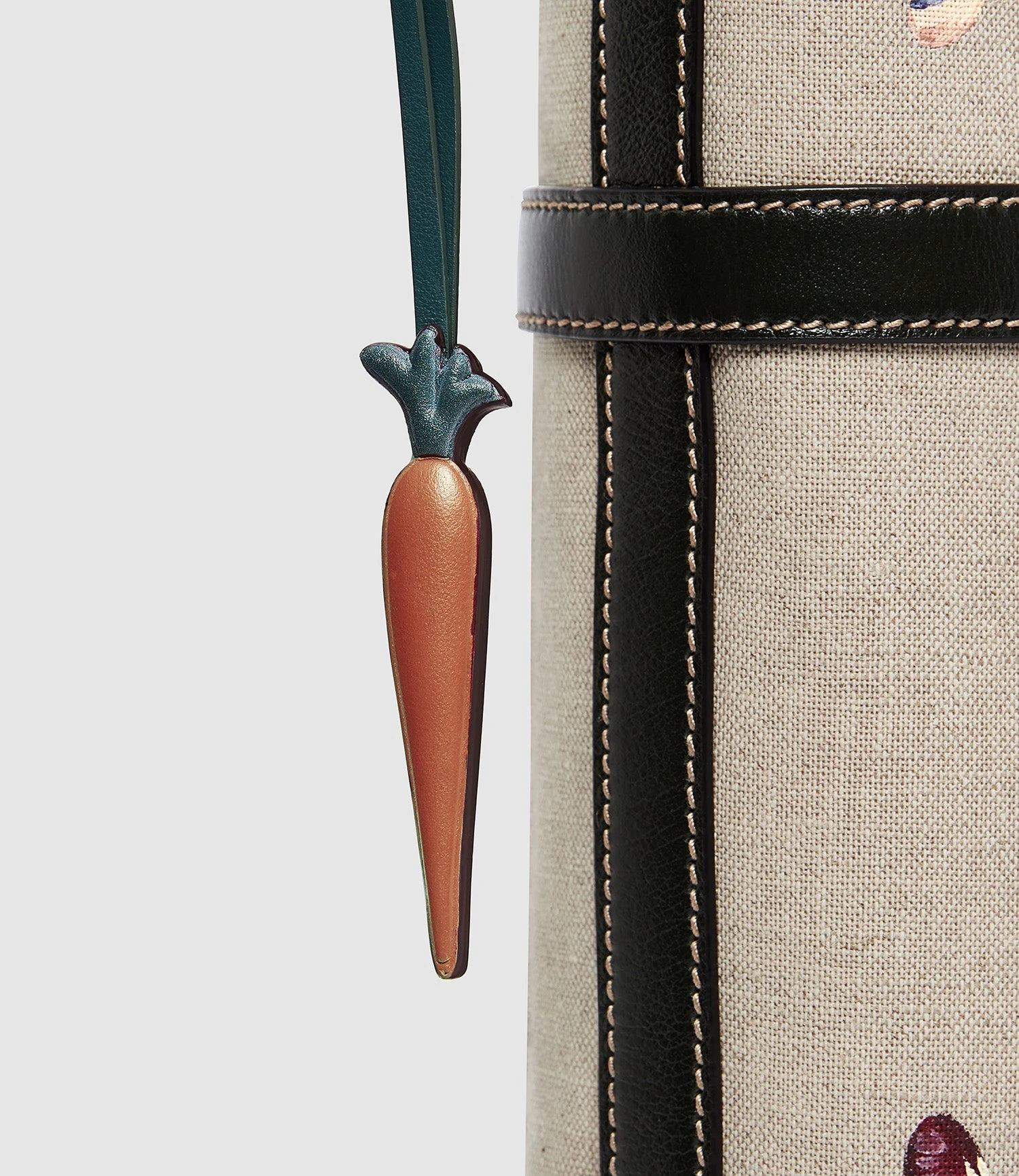 This Métier x Gohar World wine bottle carrier expresses the two brands’ shared love of craft. It’s made of water-resistant Natural Linen with Smooth Calfskin trim in Dark Green. In keeping with the harvest-inspired theme of the collaboration, it’s embellished with heirloom bean motifs that have been hand-painted by the Gohar World team in New York and comes with a distinctive leather carrot charm.