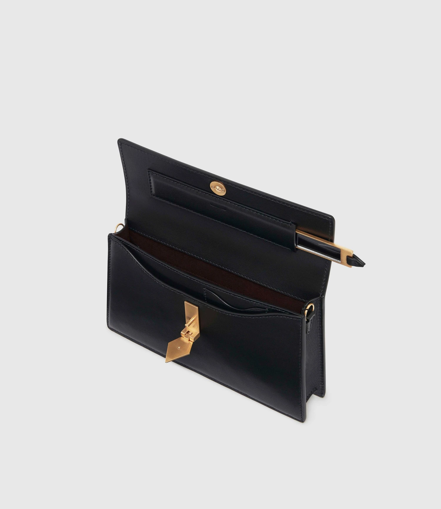 Larger than our Ease, but smaller than our Roma, the Parallel 22 is the perfect, classic handbag for daylight excursions into twilight affairs. Designed with even the smallest detail thought through, from internal compartments and easy to reach cardholder, to the feel of the diamond shaped clasp that’s subtly rounded at the edges to find your finger gently time and time again, and the sound the clasp makes when snapped closed – satisfying and secure. In addition, as a special feature, a leather sheath below the inside flap, reveals a convenient mirror framed in metal housing.