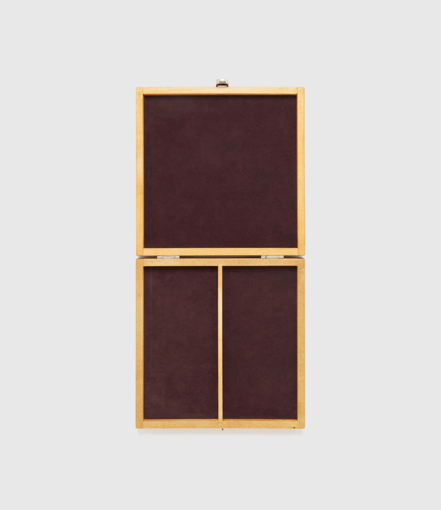 The hardware, as all of our pieces, has been crafted from solid brass. The hinges of the board have been remodelled to display our iconic 2:1 diamond, while the lock is created using the same signature mechanism as our signature Flip Lock.