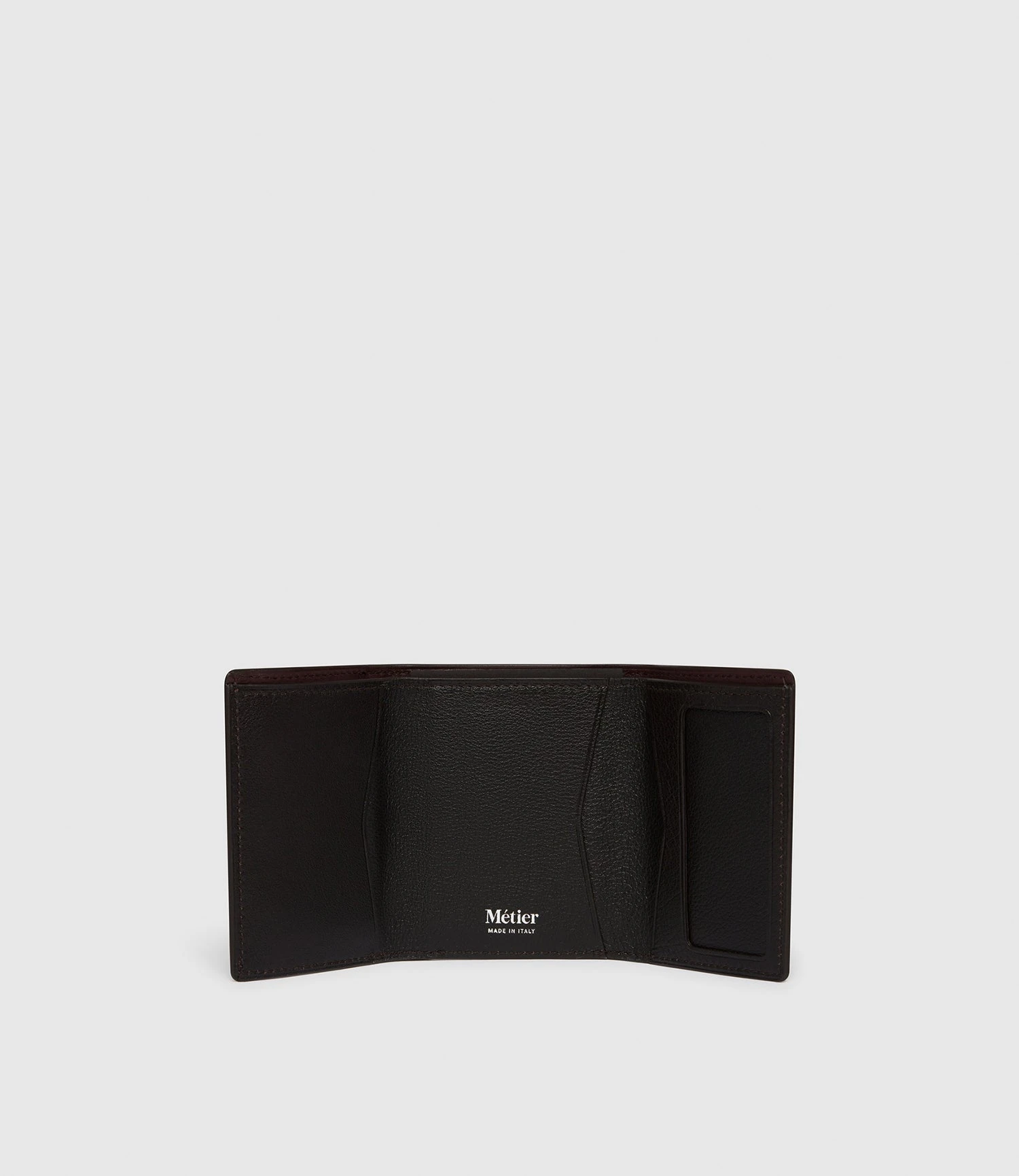 The Trifold has a place for bills, cards and coins while being trim enough to slip in to a shirt pocket.