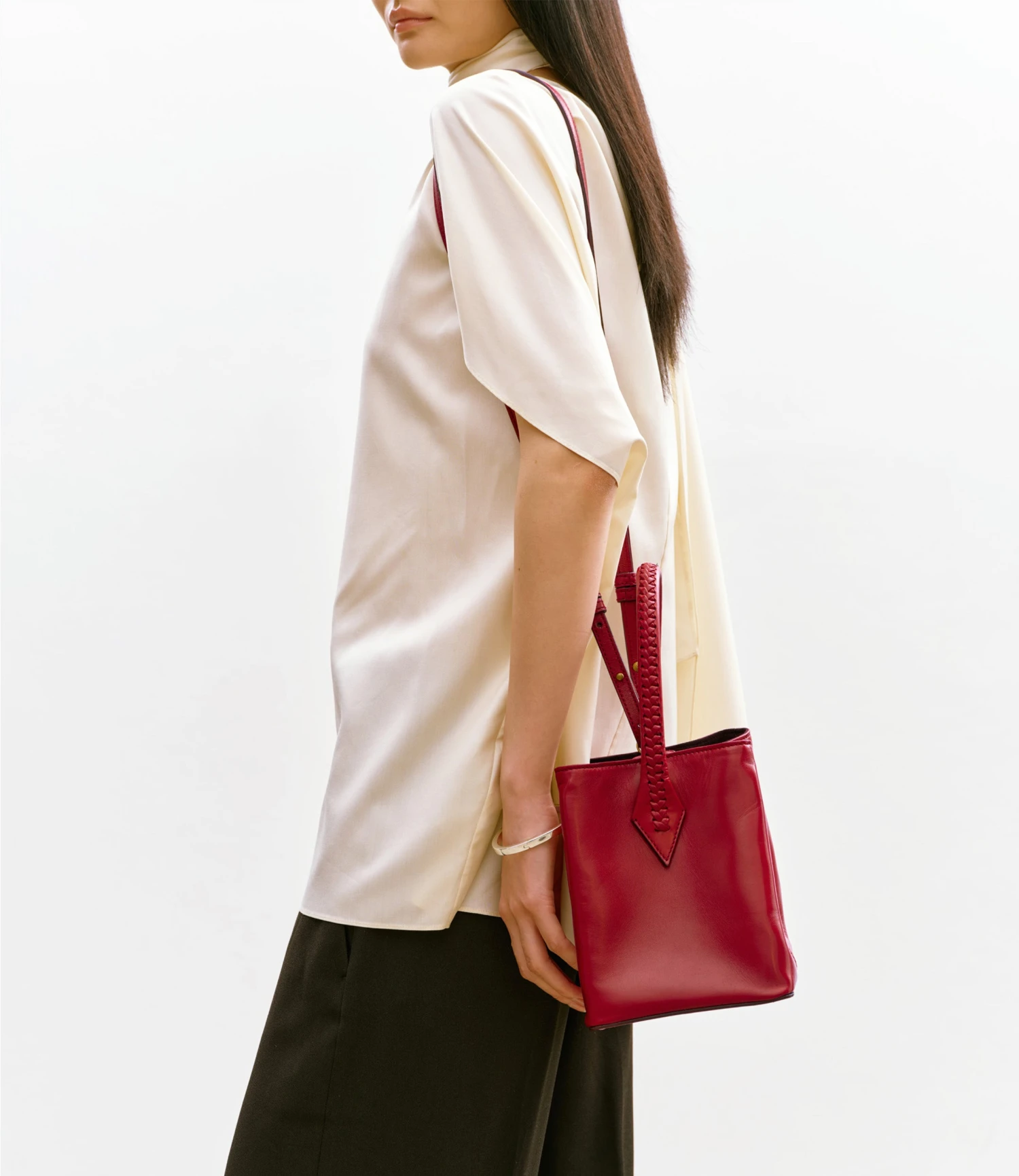 The Vérité Mini is featherweight Cabas made for briefer journeys. Hand-braided handles are a pleasure to grip, and the detachable shoulder strap can be swapped for variation. Four symmetrical interior pockets keep items close at hand without distorting the Vérité Mini’s distinct shape. Our signature construction allows the bag to snuggle the hip yet still stand up for itself when set down. Formerly the Perriand.